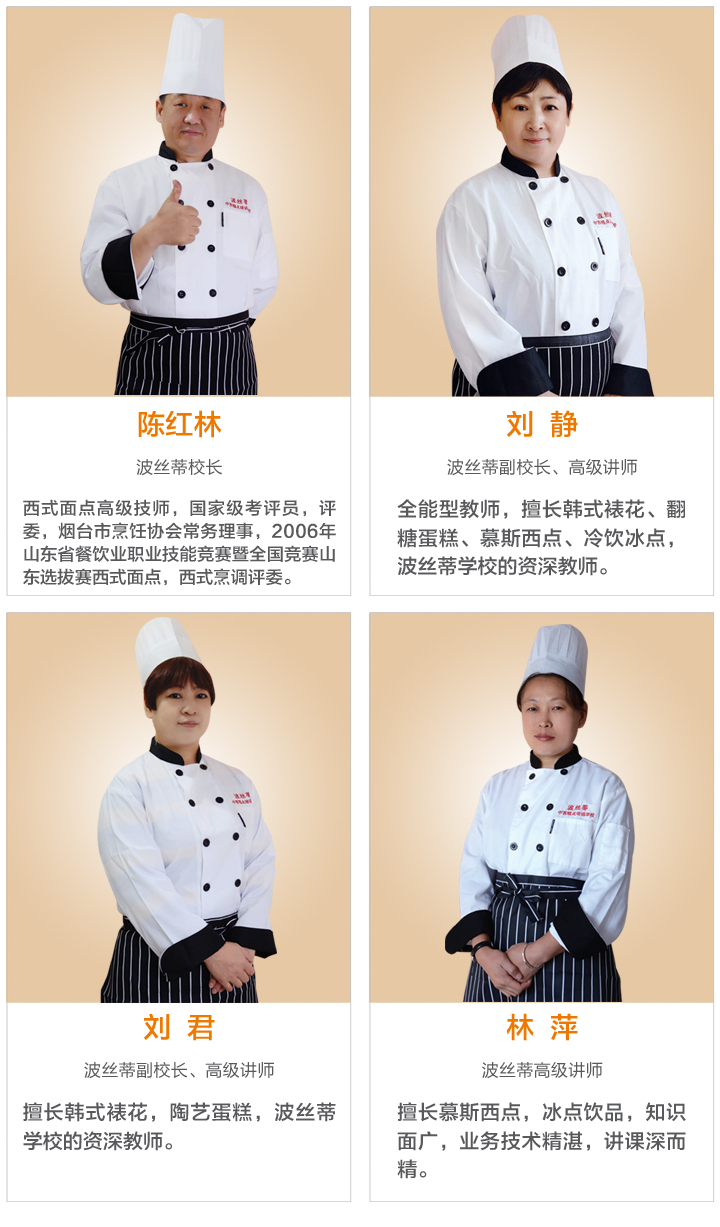 韓式裱花,慕斯西點,翻糖蛋糕,波絲蒂學校的資深教師。
